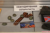 В експозиції представлені фрагменти зброї, гільзи від снарядів та трофейні пізнавальні знаки сепаратистів із терористичних організацій «ДНР». Також в залі присвяченому АТО є окремі стенди, де можна побачити особисті речі військовослужбовців.