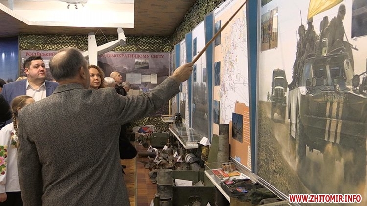 «В Житомирській області є багато структурних елементів, які відтворюють події в зоні АТО, але на жаль, на сьогоднішній день постійно діючої експозиції АТО в Житомирі та області немає. Ми вирішили створити постійно діючу експозицію в інституті. Прямого доступу на територію військового інституту немає, але подається заявка і заявки у нас виконуються на 100% в будь-який час. Іншими словами - відмов в доступі до музею у нас немає», - розповідає завідувач музею Житомирського військового інституту ім.С.П.Корольова Юрій Ткачук.