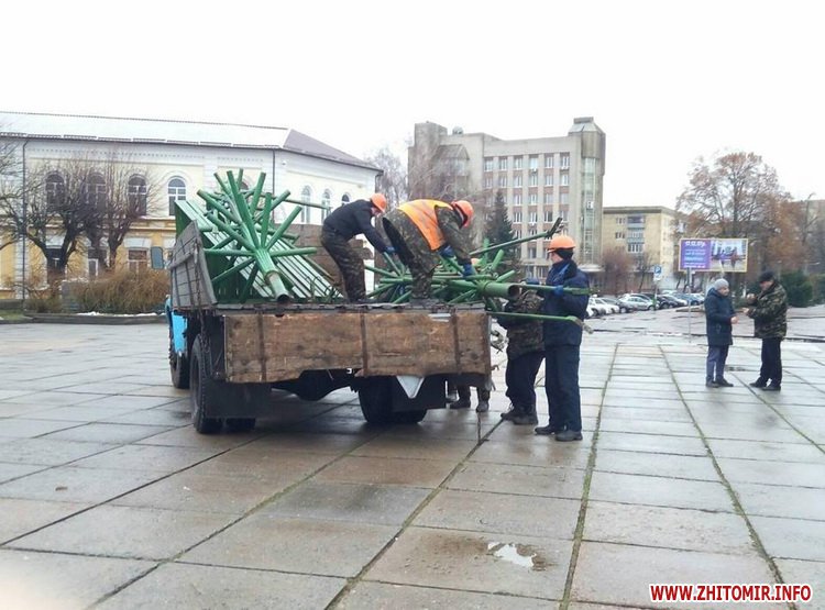 У Житомирі 7 грудня на майдан Корольова привезли конструкції від новорічної ялинки.
