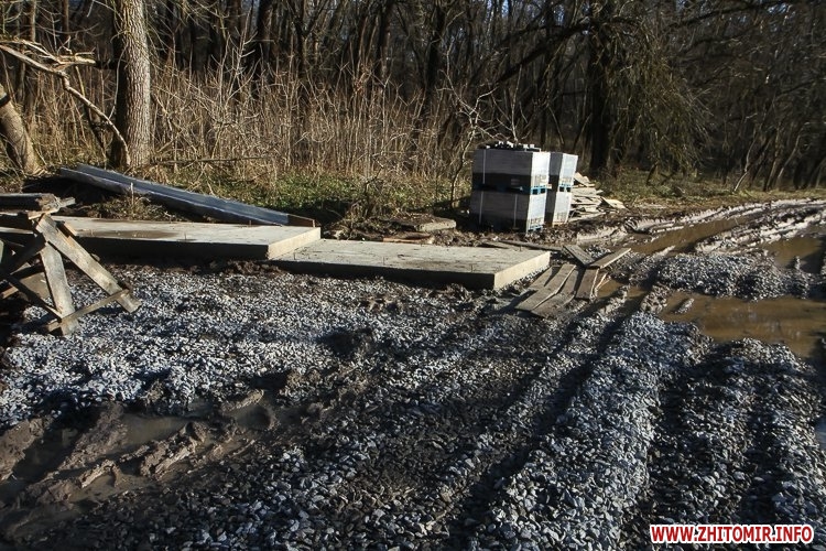 Спускаючись вниз, до річки, можна побачити безліч сміття та недобудовані сходи й будматеріали, які залишили робітники, а також житомирян, які охоче прогулюються біля річки.
