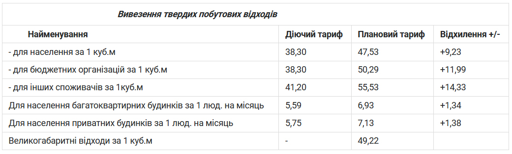 «Необхідність зміни тарифів на послуги з вивезення побутових відходів виникла з наступних причин: