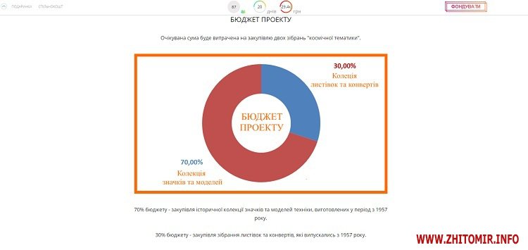 Як повідомляв Житомир.info, для того, щоб викупити колекцію раритетних значків, поштових листівок та марок на космічну тематику, необхідно трохи більше 32 тисяч гривень.