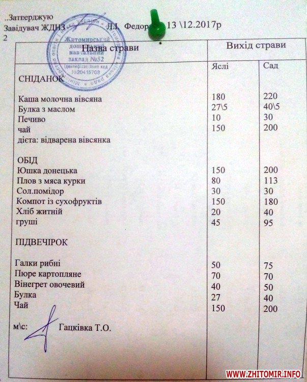 Як повідомляв Житомир.info, у 2016 батьків житомирських дітей пропонували заповнити анкету стосовно якості харчування дітей. На початку 2017 року в управлінні освіти зазначали, що поки не підніматимуть плату