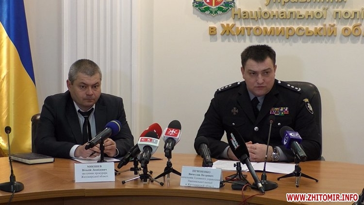 «Ми зібралися для того, щоб надати первинну інформацію стосовно вчорашнього затримання у Запоріжжі бандитської групи, яка скоювала злочини як на території Житомирської області, так і в інших регіонах нашої держави. Ми опікувалися цією групою стосовно всім відомого розбійного нападу на підприємців, які поверталися у листопаді з виставки ювелірних виробів у місті Києві до Вінниці, і біля Бердичева ці розбійники на них напали, 1 поранили, викрали автомобіль, і потім зникли разом з ювелірними прикрасами, які залишились у підприємців після цієї виставки. Одразу ж, з наступного дня, наші оперативники, наш кримінальний блок зайнялися розслідуванням цього злочину, і як наслідок - блискуча спецоперація, яка була проведена у місті Запоріжжі напередодні скоєння ними майбутнього злочину. Вони планували розбійний напад на одну з осель у Запоріжжі. Для цього вони використовували однострій поліцейських, фіктивну ухвалу суду для проведення слідчих дій, щоб зайти в цю домівку. Але, не довівши цей злочин до кінця, працівниками КОРДу вони були затримані. До затримання цієї групи були залучені працівники департаменту карного розшуку, прокуратури і СБУ. Чому СБУ? Тому що вся група 100% - це уродженці Донецька, і вже ж підтверджені нами факти під час розслідування в тому, що вони неодноразово здійснювали поїздки на територію ДНР окуповану», - сказав Вячеслав Печененко.
