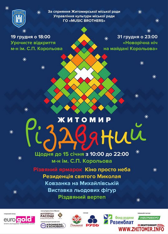 19 грудня о 18 годині на майдані Корольова у Житомирі відбудеться урочисте відкриття центральної новорічної ялинки та четвертого в історії міста Різдвяного ярмарку.