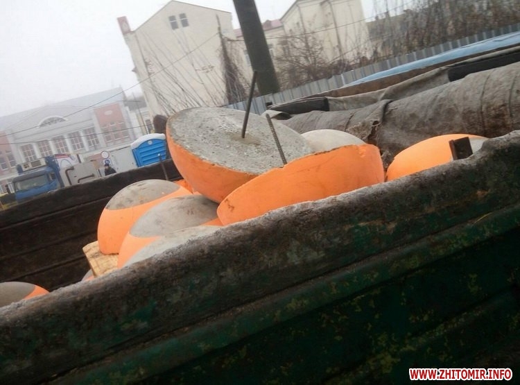 У Житомирі зранку, 15 грудня, працівники КП «УАШ» почали встановлювати на реконструйованих тротуарах, по вулиці Київській, напівсфери, аби унеможливити заїзд та паркування машин.