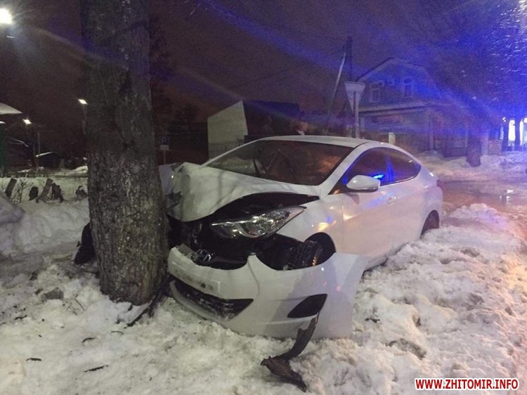 23 грудня на вулиці Фізкультурній у Житомирі (напрямок Вільський Шлях) Volkswagen в’їхав у сповп, а Hyundai – у дерево на Покровській.