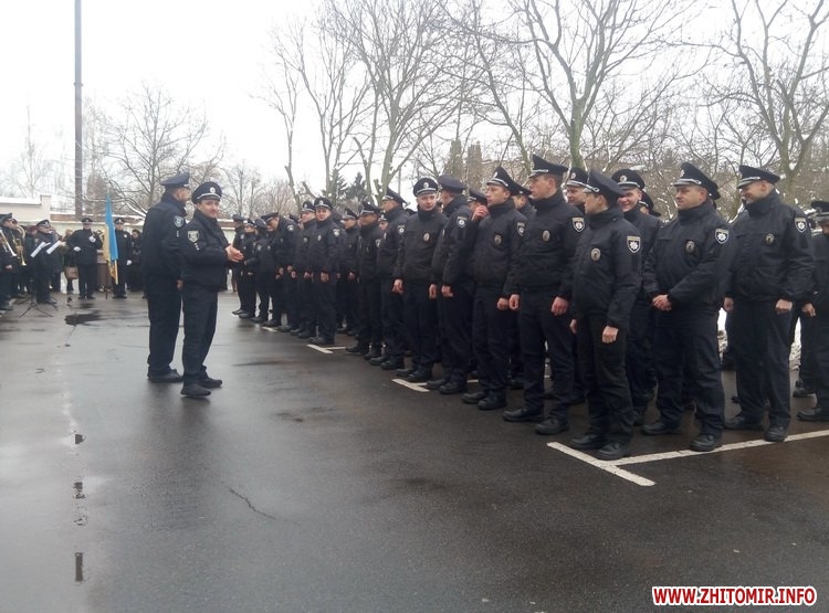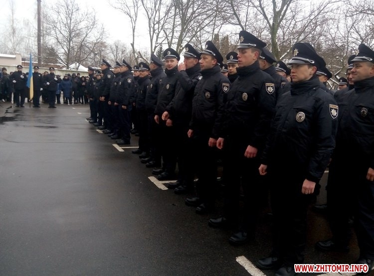 Вранці, 23 грудня, 63 нових патрульних поліцейських склали присягу на вірність народу України. Усі вони пройшли відбір та навчання, а сьогодні привітати їх прийшли представники обласної влади, керівництво головного управління Національної поліції в Житомирській області, рідні та близькі.