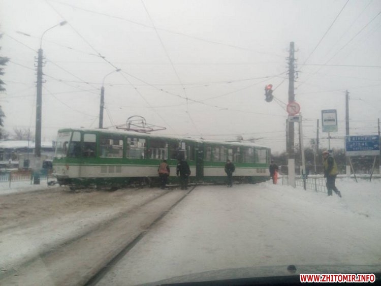 У Житомирі 19 грудня близько 14:00 поблизу трамвайно-тролейбусного управління з рейок зійшов трамвай.
