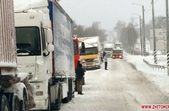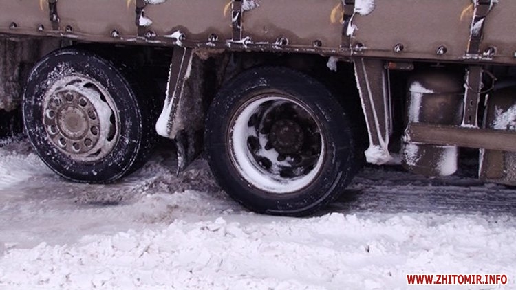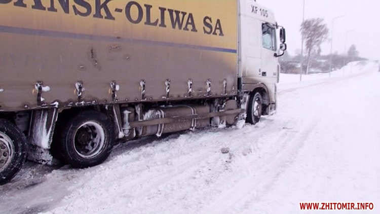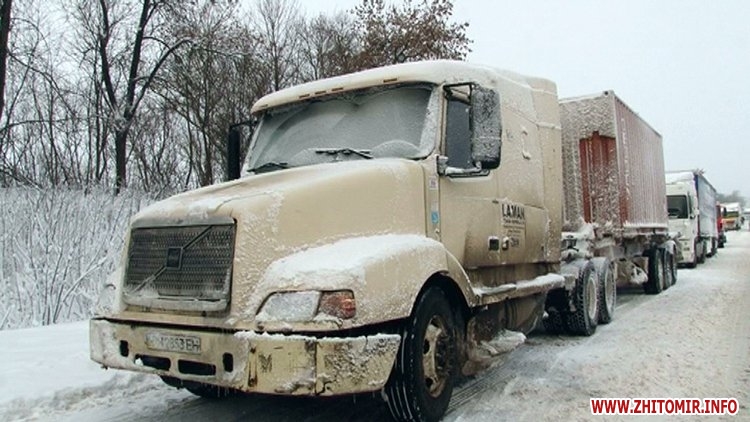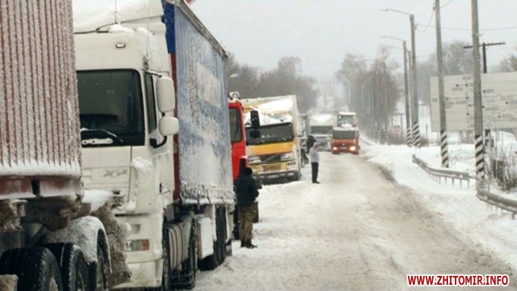 Багатокілометровий затор утворився на кордоні між Житомирською на Вінницькою областями. Сотні фур, бензовозів та вантажівок застрягли на узбіччях траси Житомир-Могилів-Подільський. Через потужні снігопади, які тривають з 18 грудня, вночі транспортні засоби не змогли здолати круті підйоми та загрузали.