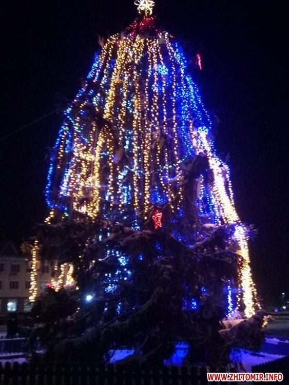 У ніч на 21 грудня невідомі зірвали декілька гірлянд та знищили частину ялинкових іграшок на головній міській ялинці в Малині Житомирської області.