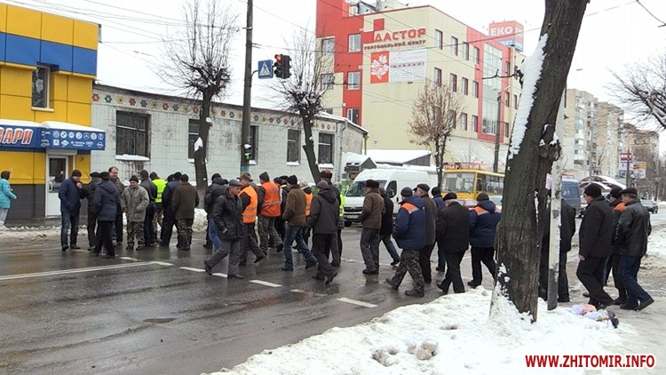 Близько сотні працівників Житомирського облавтодору перекрили одну з центральних вулиць Житомира, вимагаючи виплати заборгованої зарплатні. Люди бідкаються: щодень ходять на роботу, однак зарплатні не бачать вже як п’ятий місяць. Тому кажуть: терпець увірвався, і обіцяють стояти до останнього, аж поки на їхні рахунки не надійдуть кошти.