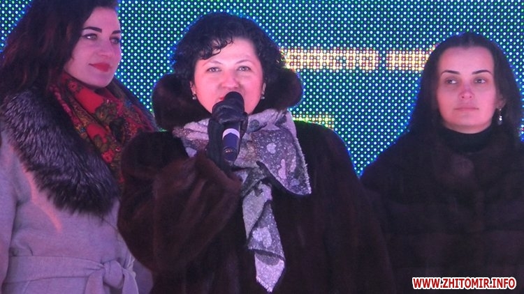 «Дорогі житомиряни, дозвольте привітати вас із наступаючими новорічними святами і Різдвом. Побажати вам миру і злагоди, родинного затишку і основне - здоров’я. Особливі привітання я передаю від міського голови. На щастя чи на жаль, до хлопців, до нашої славетної 95-ї бригади повіз подарунки в зону АТО. Правда, ми переживаємо дуже нелегкі часи. І саме завдяки нашій славетній бригаді ми маємо таку можливість - зустріти ці свята в затишку, в мирі та в спокої. Тому усіх із зі святами, миру, добра й любові. І також я хочу подякувати організаторам і спонсорам цього свята. Адже без них це святкування точно не відбулось би», - звернулась до містян секретар Житомирської міської ради Наталія Чиж.