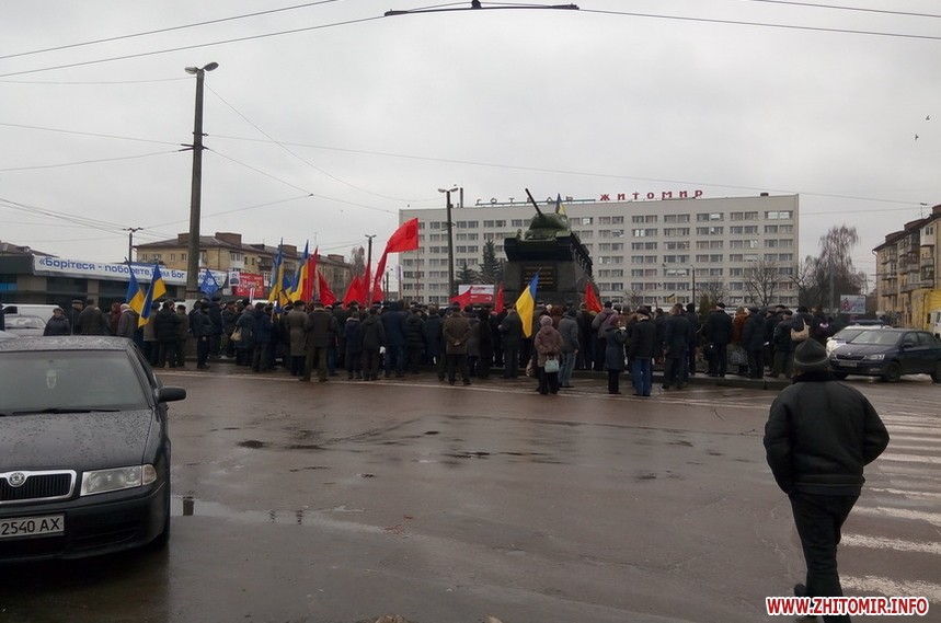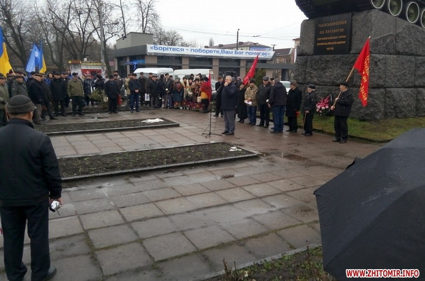29 грудня в центрі Житомира, на майдані Перемоги, зібралася майже сотня людей с прапорами та квітами.