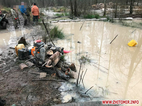 «У копачів вилучено специфічне обладнання для видобутку сонячного каміння. Зокрема, упродовж 29 грудня правоохоронці виявили копальні поблизу с. Андріївки Олевського району. На місцях їх розташування у лісовому масиві було затримано трьох чоловіків, з яких двоє жителів райцентру віком 37-ми та 32-х років, інший – 37-річний житель району. Працівники слідчо-оперативної групи місцевого відділення поліції під час документування події вилучили з копалень загалом 6 мотопомп, пожежні рукави, забірники та інше старательське приладдя», – інформують у ГУНП.