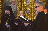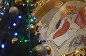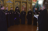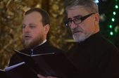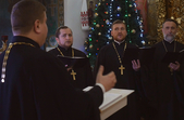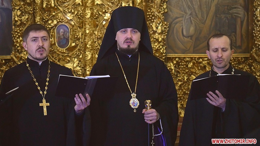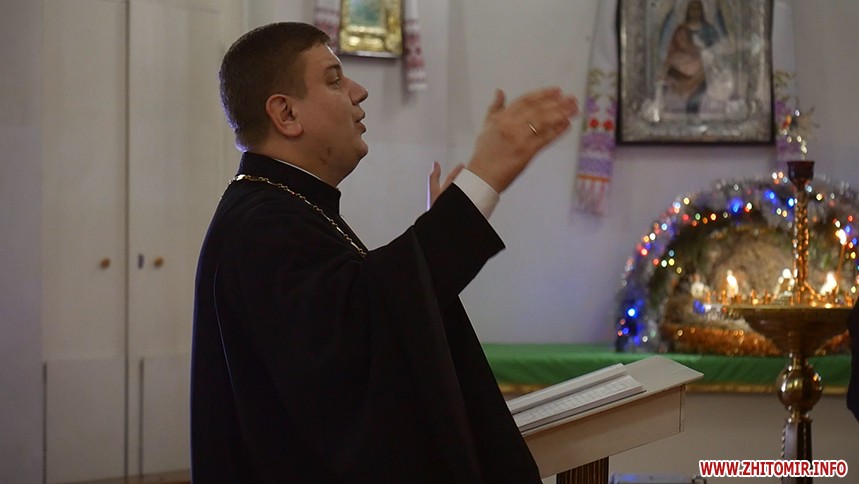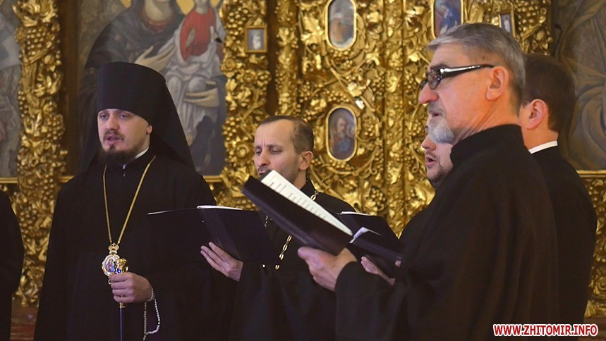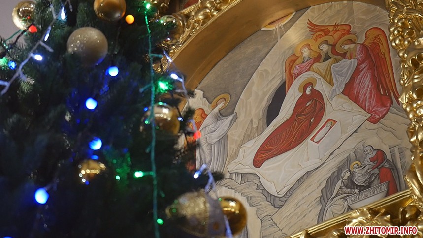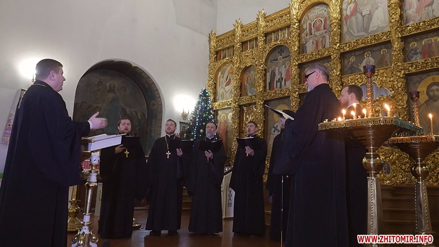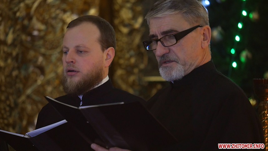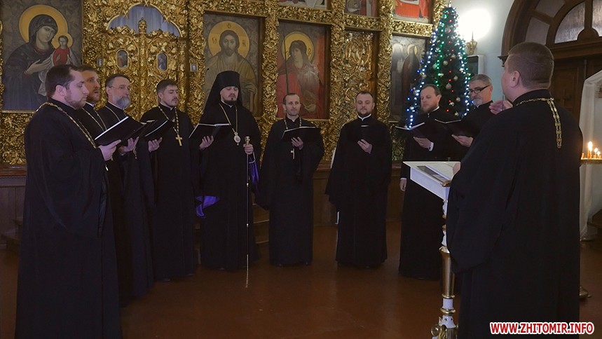 Священнослужителі житомирського Свято-Михайлівського кафедрального собору привітали містян із прийдешнім святом Різдва і виконали колядку «Во Вифлеємі зоря сіяє».