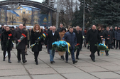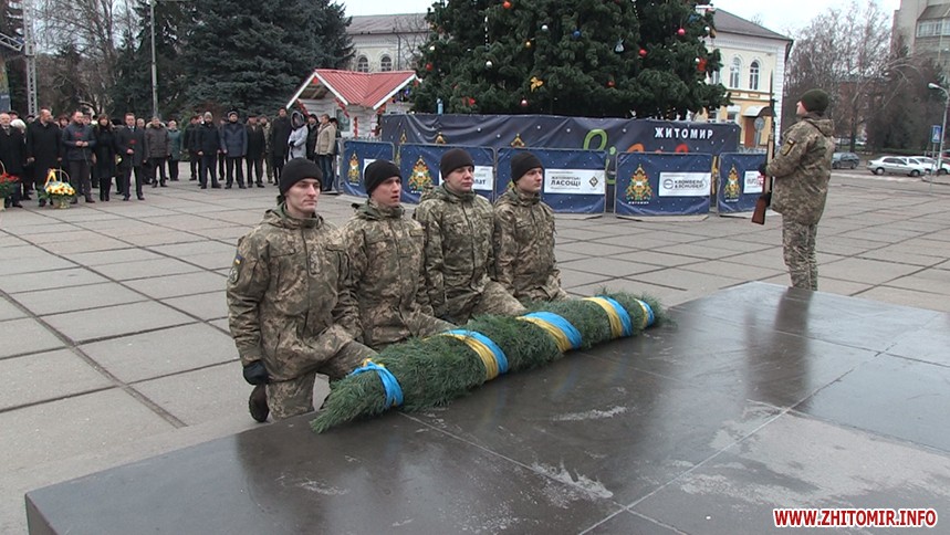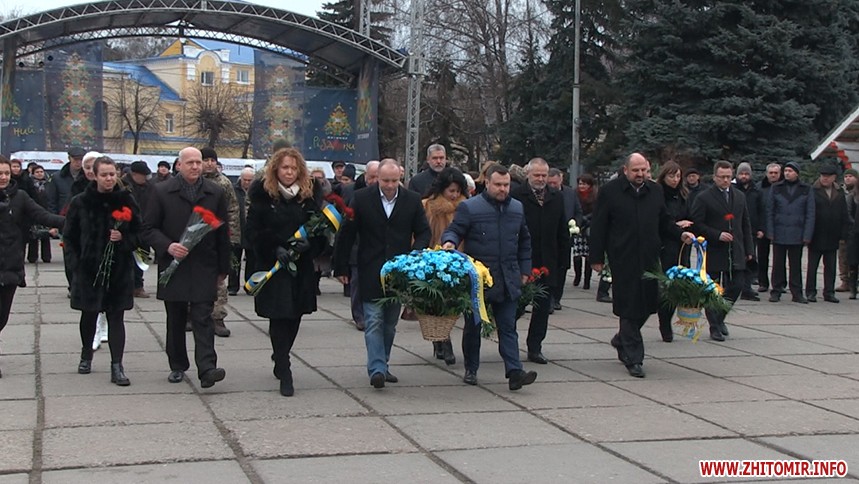 На майдані Корольова зібралося більше сотні людей. Після урочистого покладання квітів біля пам’ятника видатному конструктору марширувала рота почесної варти Житомирського військового інституту ім. С. П. Корольова з оркестром.