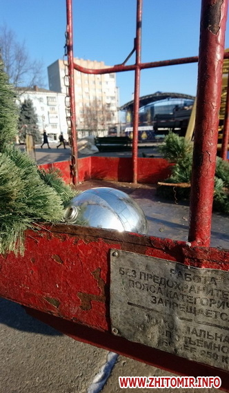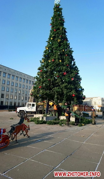 Як повідомляв Житомир.info, 7 грудня 2017 року на майдан Корольова привезли конструкції від новорічної ялинки для встановлення.