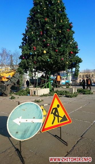 Зазвичай у Житомирі демонтаж новорічної красуні триває 2-3 дні.