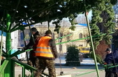 Цього року вони почали розбирати її знизу: демонтуючи іграшки та гілки. Минулоріч працівники «Міськсвітла» спочатку знімали гірлянди та іграшки, щити навколо ялинка, а потім починали демонтувати верхівку.