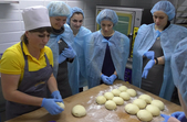Після частувань гості відвідали серце закладу – кухню. Там на них чекав сюрприз – майстер-клас з виготовлення хачапурі під пильним керівництвом кухаря закладу.