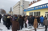 «Близько 200 людей, у більшості – чоловіки літнього віку. Це військові пенсіонери, вимагають перерахунку пенсій. Збиралися біля КПП військового інституту, а зараз перекрили дорогу», – повідомила журналістка.