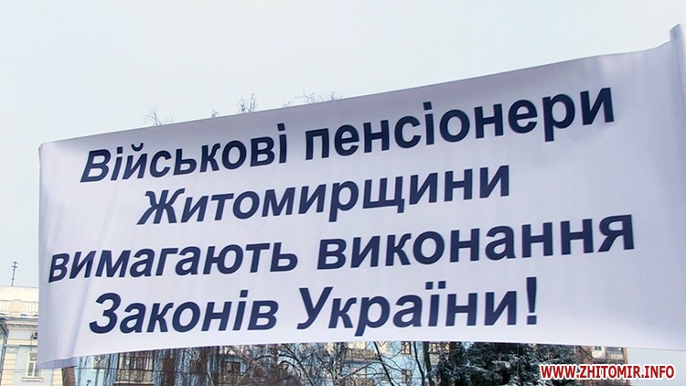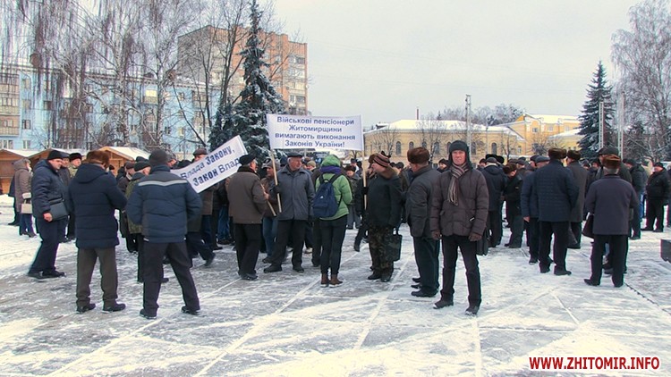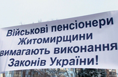 Кількасот людей літнього віку збираються біля Житомирської ОДА. Більшість з них – колишні військові. Кажуть: долучились до всеукраїнської акції протесту, бо Кабінет міністрів України не провів обіцяного перерахунку пенсій військовим пенсіонерам.
