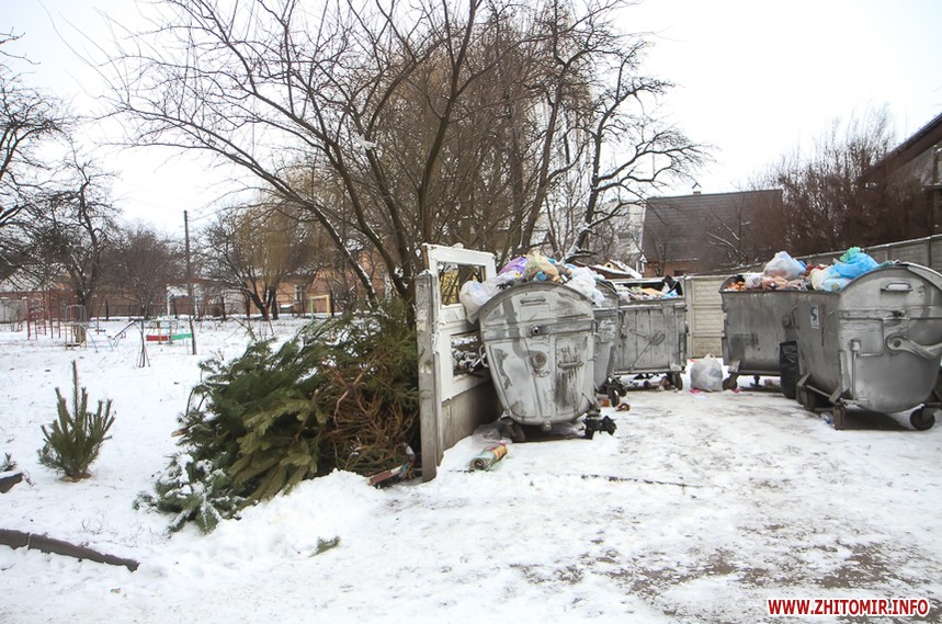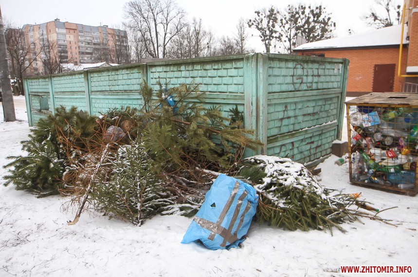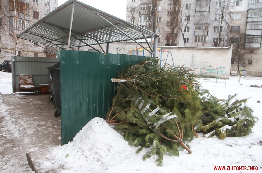 Житомиряни масово виносять з домівок «дух» Нового року - ялинки й сосни, більшість з яких навіть не обсипалася і не втратила форму й колір. З кожним днем на смітниках все більше зелених красунь. Вочевидь, містяни поспішають винести новорічні дерева з помешкання ще до того, як з них почнуть сипатися гілки, і майданчики для відходів «позеленіли» десь з 15 січня.