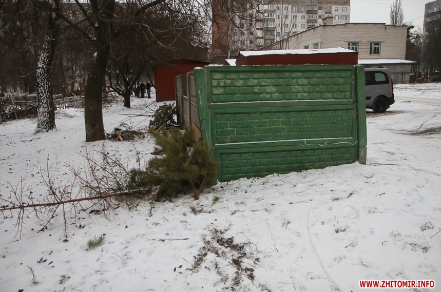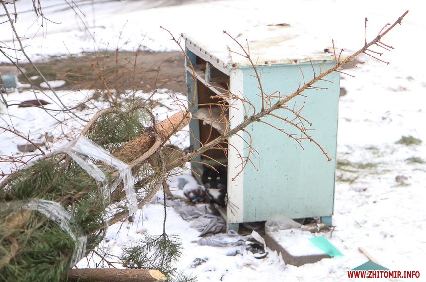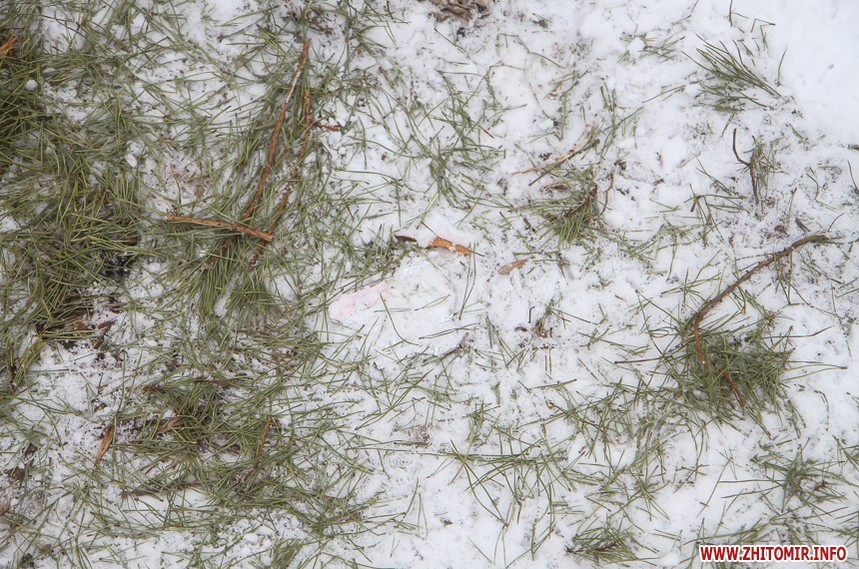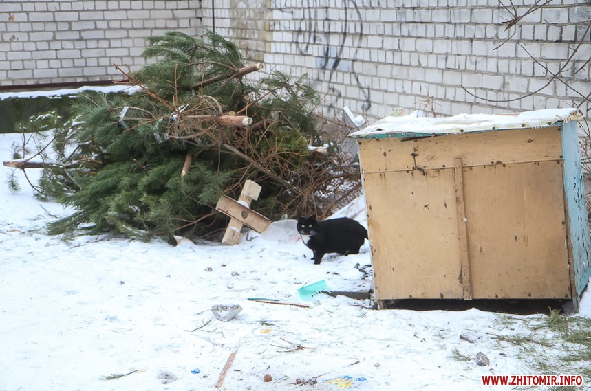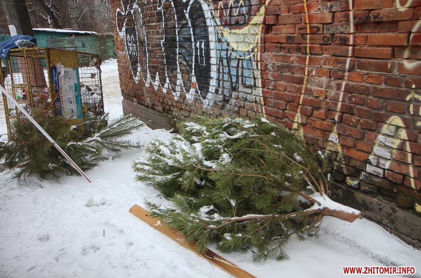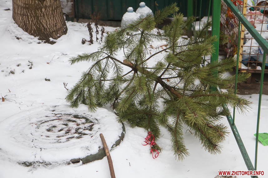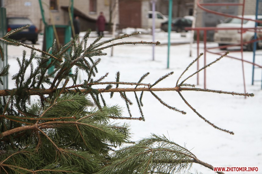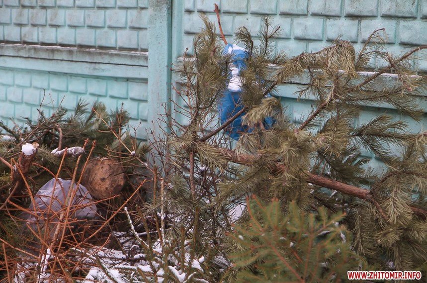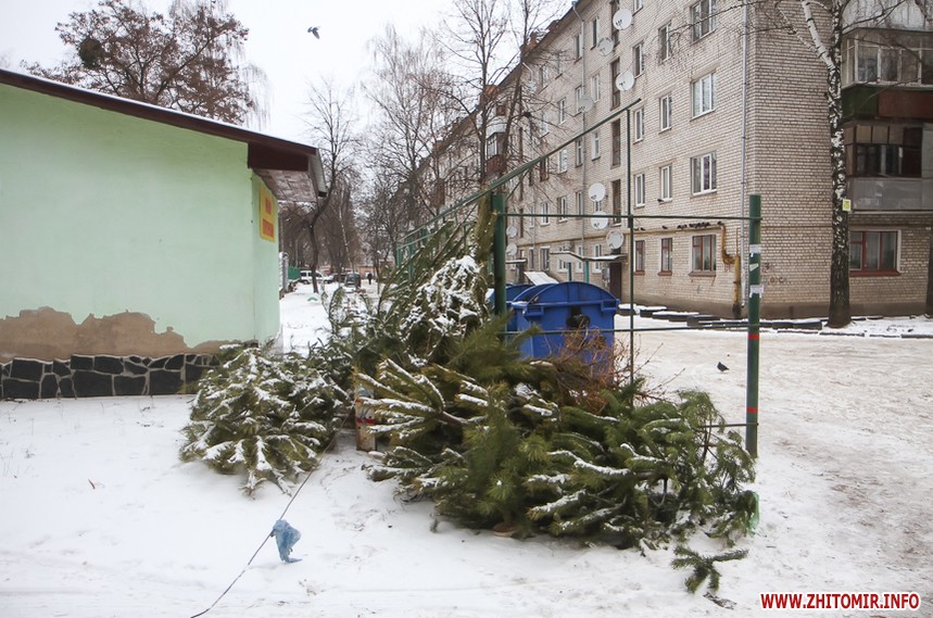 18 січня, перед Водохрещем, наша фотокореспондент пройшлася по деяких вулицях у центрі Житомира, на Крошні та Богунії, зафіксувала «соснопад» у дворах будинків та переконалася, що не всі доносять ялинки до смітників, а залишають їх просто біля під’їздів або в декількох метрах від контейнерів.