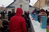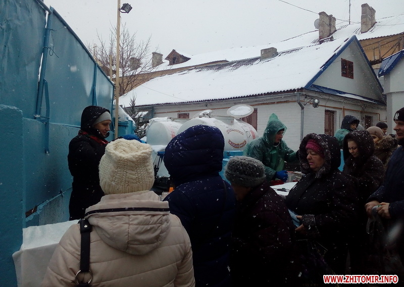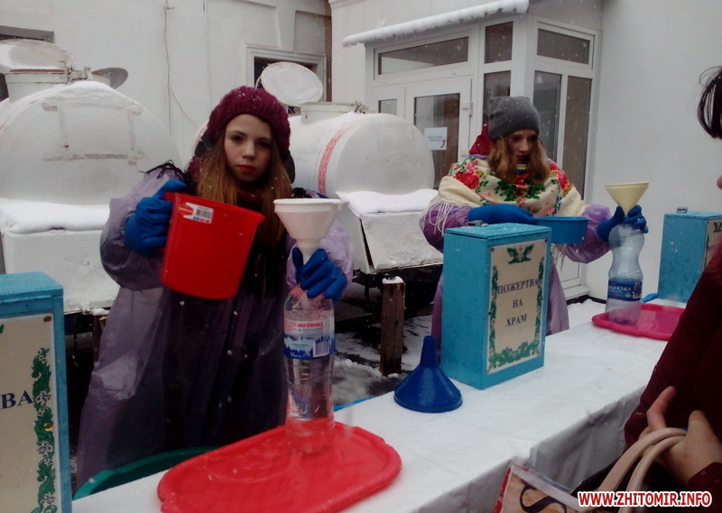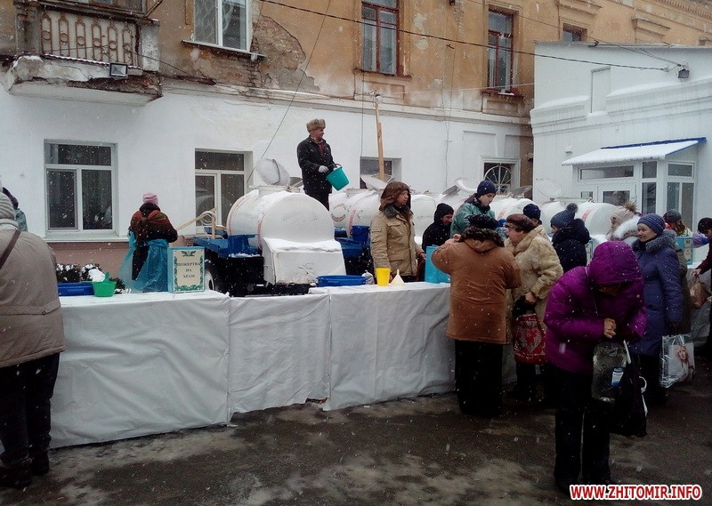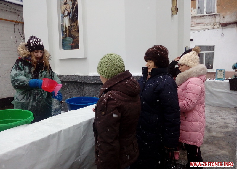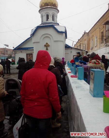 19 січня біля Свято-Михайлівського собору на Київській людно: житомиряни запасаються йорданською водою і вітають одне одного з третім завершальним великим свято різдвяно-новорічного циклу. Біля храму традиційно розмістили бочки з водою і поставили столи, за якими десятки волонтерів наповнюють посуд вірян і вигукують: «Христос охрещається!», на що люди відповідають: «У річці Йордані!».