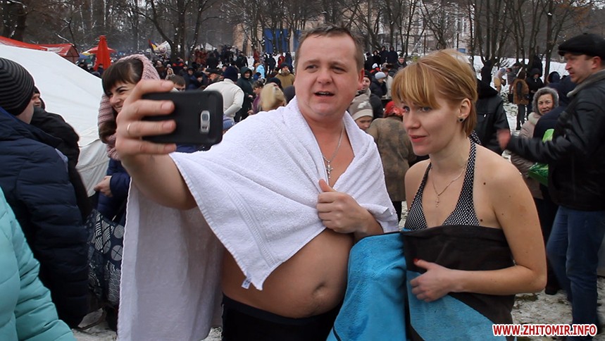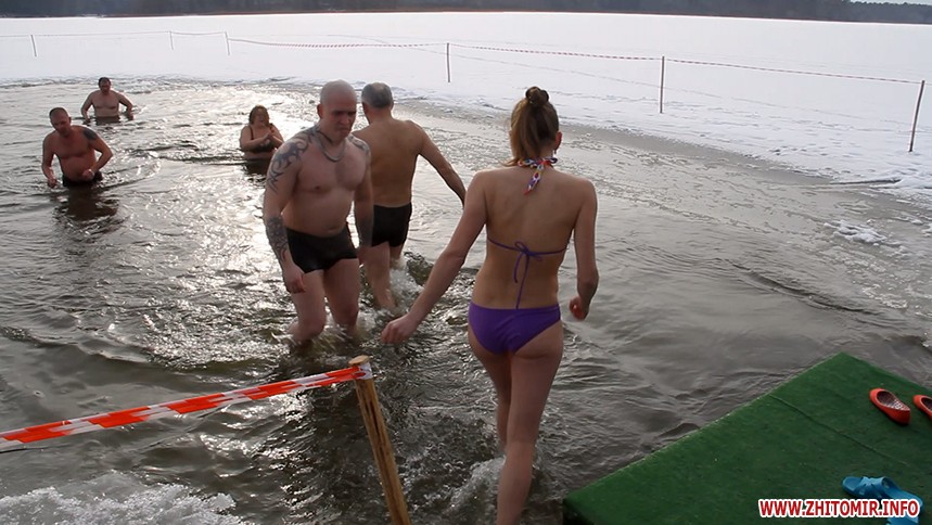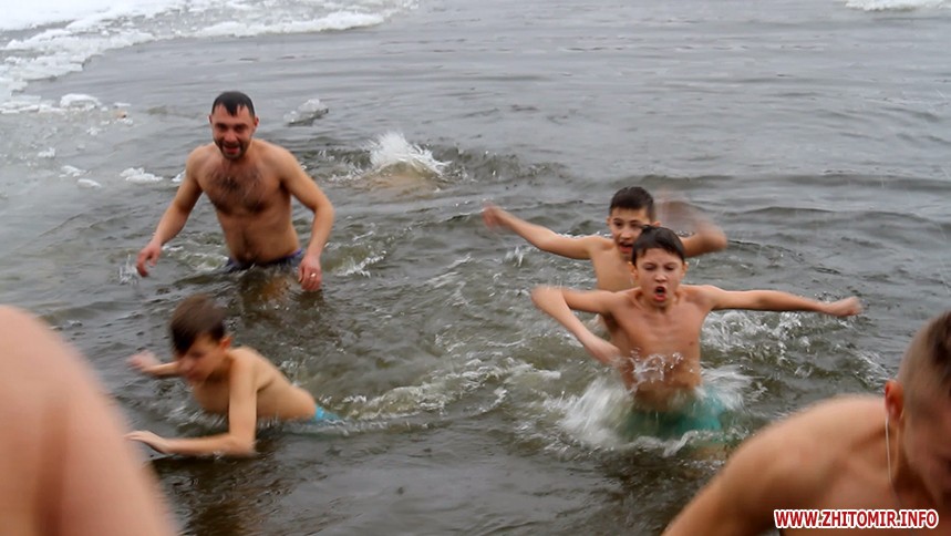 У Житомирі Водохреща відзначили богослужінням та традиційним купанням в ополонці на річці Тетерів. Попри морозну погоду та сніг охочих пірнути у крижану воду вистачає. З-поміж дорослих та досвідчених багато малечі.