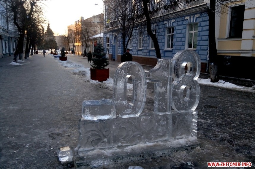 Як повідомляв Житомир.info, 6 крижаних скульптур встановили у Житомирі 8 січня: льодяного святого Миколая, янгола, оленя, собаку, логотип Житомира та число 2018 розмістили вздовж вулиці Михайлівської. За годину до офіційного відкриття льодяних скульптур крижаному оленю відбили голову.