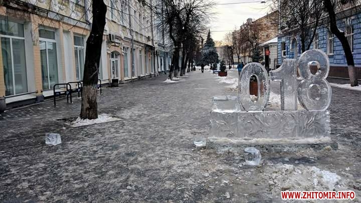 Вранці 20 січня на Михайлівській у Житомирі містяни побачили ще одну розбиту льодову фігуру. Цього разу вандали пошкодили двійку в цифрах нового року «2018».