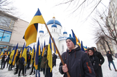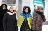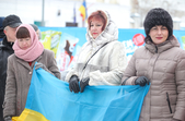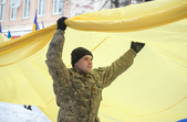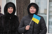 Люди збиралися на вулиці Михайлівській. О 13 годині біля Свято-Михайлівського собору розгорнули величезний синьо-жовтий прапор як символ «єднання України від сходу до заходу».