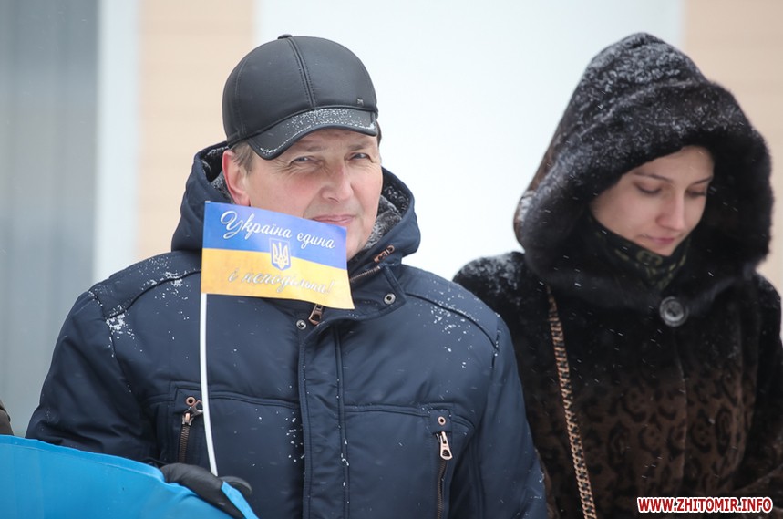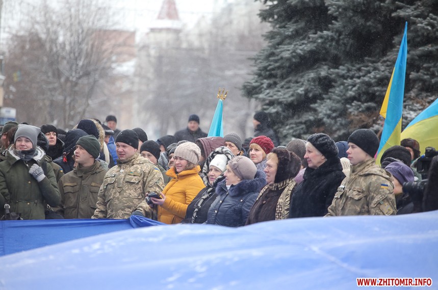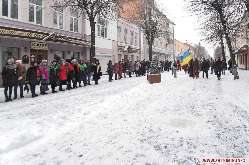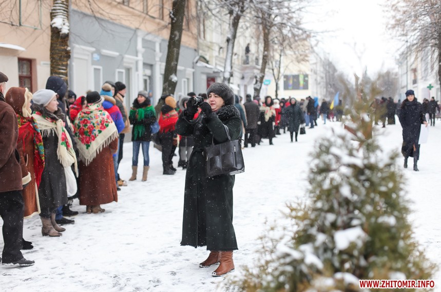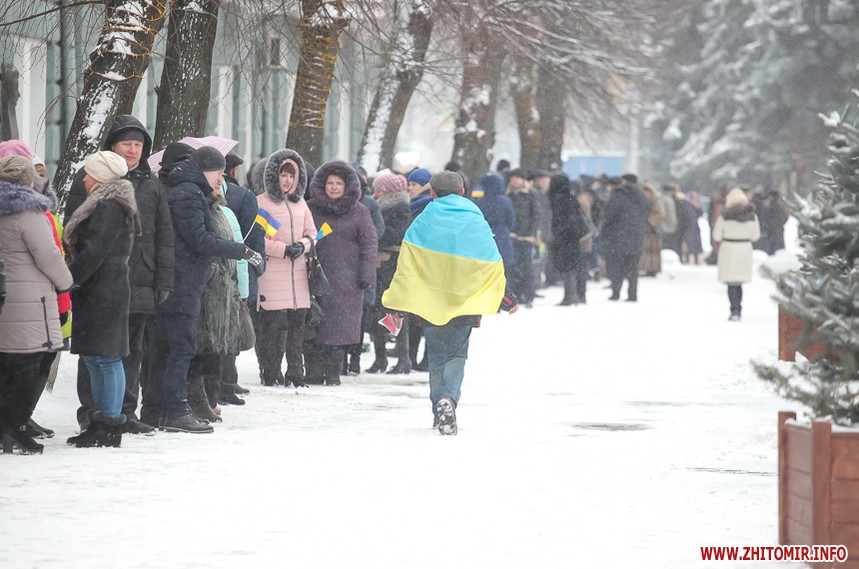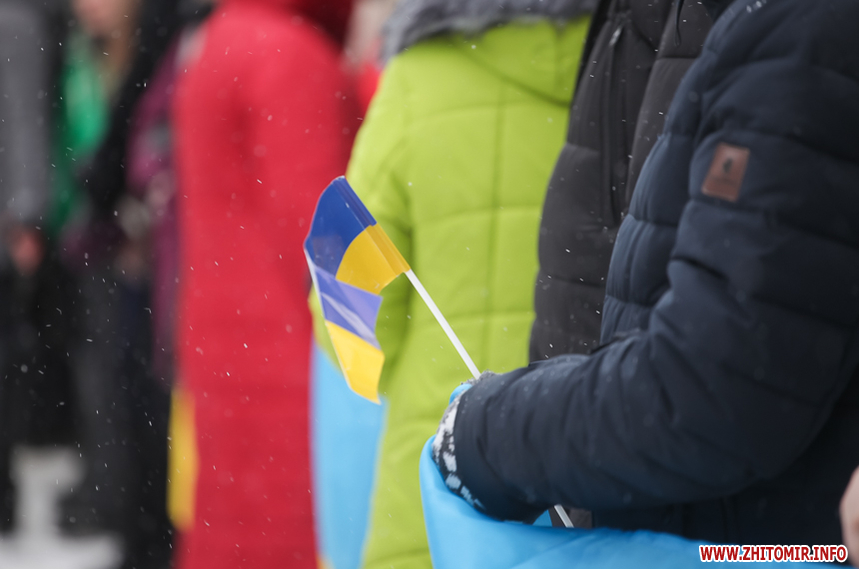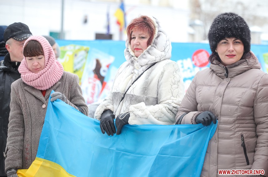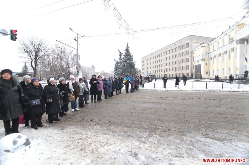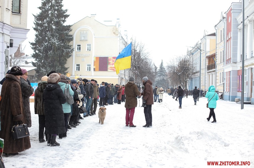 22 січня кілька сотень житомирян зібралися у центрі міста, щоб утворити символічний «живий ланцюг» до Дня Соборності України.