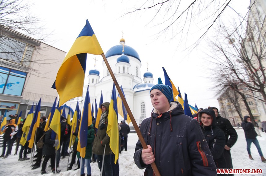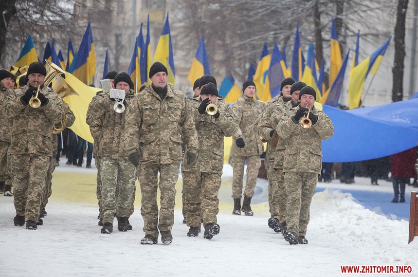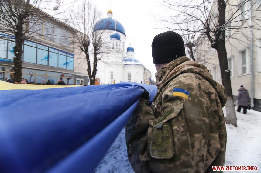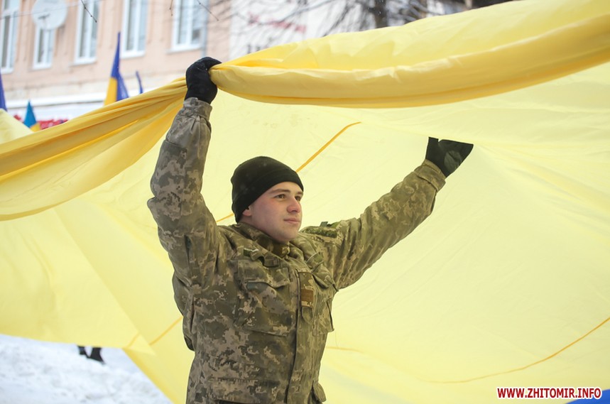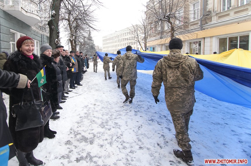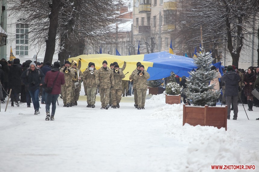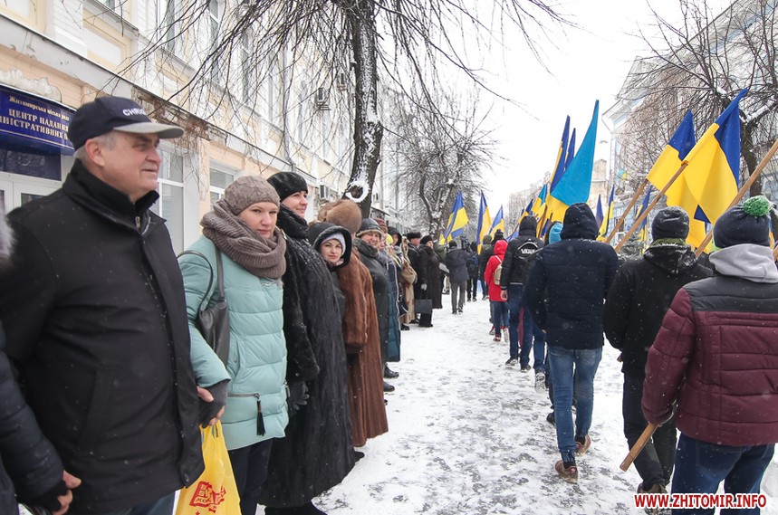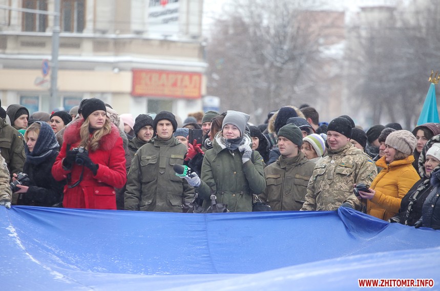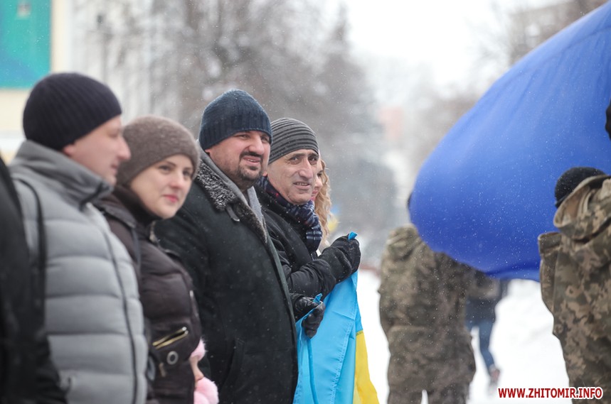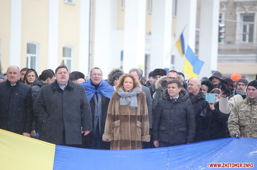 22 січня кілька сотень житомирян зібралися у центрі міста, щоб утворити символічний «живий ланцюг» до Дня Соборності України.