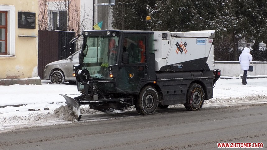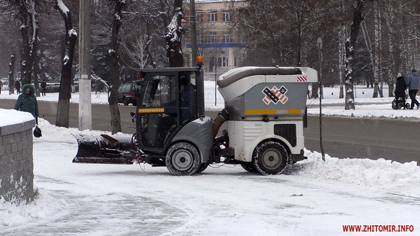 Житомир від снігу розчищає 12 одиниць спеціалізованої техніки: починаючи від габаритних «Глобусів» з відвалами для прибирання доріг до невеликих за розмірами вакуумних пилососів та міні-навантажувачів зі щіткою для прибирання тротуарів.