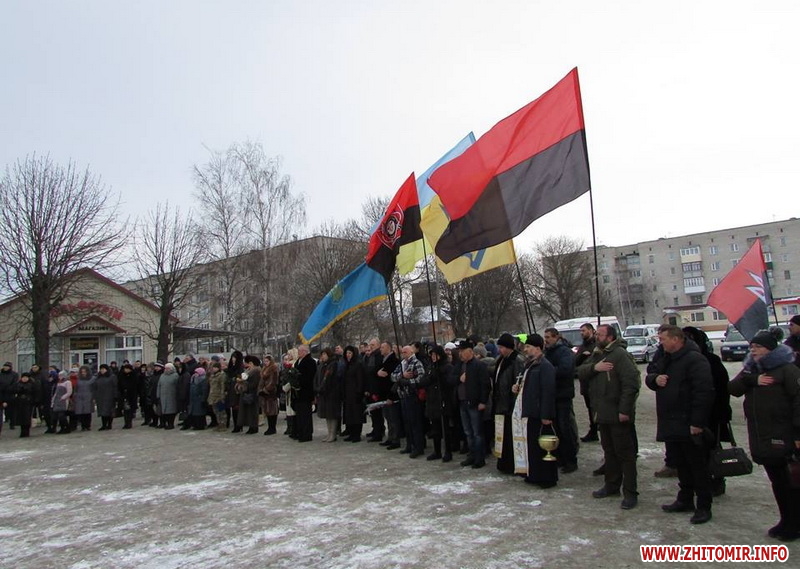 Також слово для виступу було надано голові Новоград-Волинської політичної партії «Національний корпус» Всеукраїнського братства ОУН-УПА імені Романа Шухевича-Тараса Чупринки Олександру Дюбо, який висловив подяку усім, хто доклав зусиль, щоб ця історична подія. Меморіальну дошку освятив настоятель Свято-Михайлівського собору, протоієрей Геннадій Пограничний.