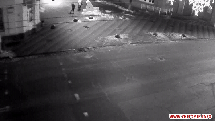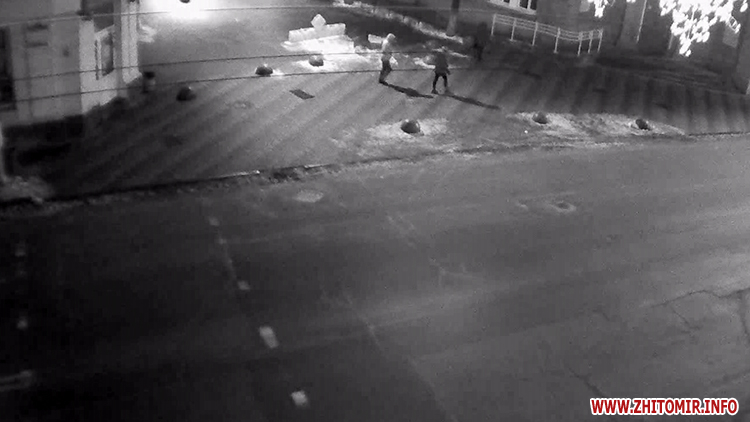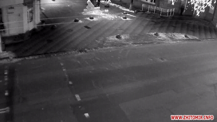 Камери відеоспостереження, які підключені до системи «Безпечне місто» зафіксували, як в ніч з 25 на 26 січня у Житомирі розбили останню льодову скульптуру «Знак Житомира».