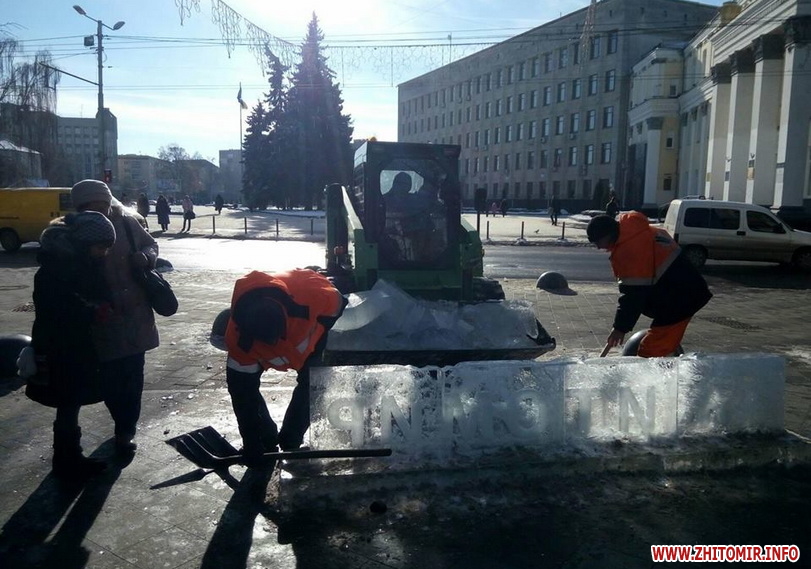 Як повідомляв Житомир.info, 6 крижаних скульптур, подарованих місту меценатами, офіційно відкрили 8 січня під час Різдвяного ярмарку. Але за годину до офіційного відкриття льодяних скульптур крижаному оленю відбили голову. 10 січня організатори Різдвяного ярмарку звернулися до поліції із заявою щодо пошкодження льодової скульптури оленя невідомою особою. Перед Водохрещам на Михайлівській демонтували фігуру янгола, а 19 січня прибирали залишки крижаного Миколая, якого, вочевидь, розбили вночі. Вранці 20 січня на Михайлівській у Житомирі містяни побачили розбиту льодову фігуру - вандали пошкодили двійку в цифрах нового року «2018».