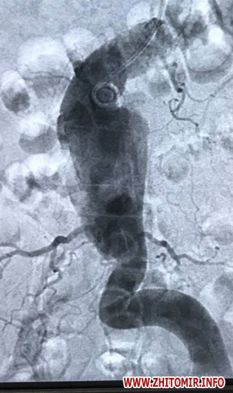 «Вперше в Україні, в Житомирській обласній лікарні, в кардіохірургічному відділенні використано апарат штучного кровообігу з метою швидкої реінфузії крові при резекції розшаровуючої аневризми черевного відділу аорти (диссекція аорти розповсюджувалась на ниркові та здухвинні артерії). Швидкість аутогемотрансфузії 50-500 мл/хв, в умовах повної гепаринізації, об’єм реінфузії 2,5 л. Вага пацієнтки 120 кг. По закінченню операції гемоглобін 123 г/л, інфузія еритроцитів не проводилась. Пацієнтка виписана на десятий день, після оперативного втручання, додому, в задовільному стані. В кардіохірургічному відділенні вже проведено три операції по даній методиці з розшаровуючою аневризмою черевної аорти. Всі пацієнти виписані на амбулаторне лікування», - зазначили в лікарні.