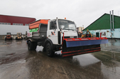 «Ось цей двадцятитонний самоскид – нова машина, яку ми нещодавно закупили по тендерній процедурі. Купили ми її разом із зимовим обладнанням: спереду на самоскид встановлено снігоочисний відвал для розгортання снігу, позаду - установка, яка розкидає піскосуміш. Найкраще проявляє себе ця машина за містом, на Західному шосе, Сосновій, Короленко. А влітку ця вантажівка возитиме щебінь, відсів, асфальт. Вся машина у цій комплектації обійшлася нам у три мільйони», - сказав Сергій Янушевич.