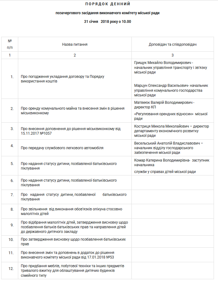 У порядку денному – 12 питань, вісім з яких – «дитячі».