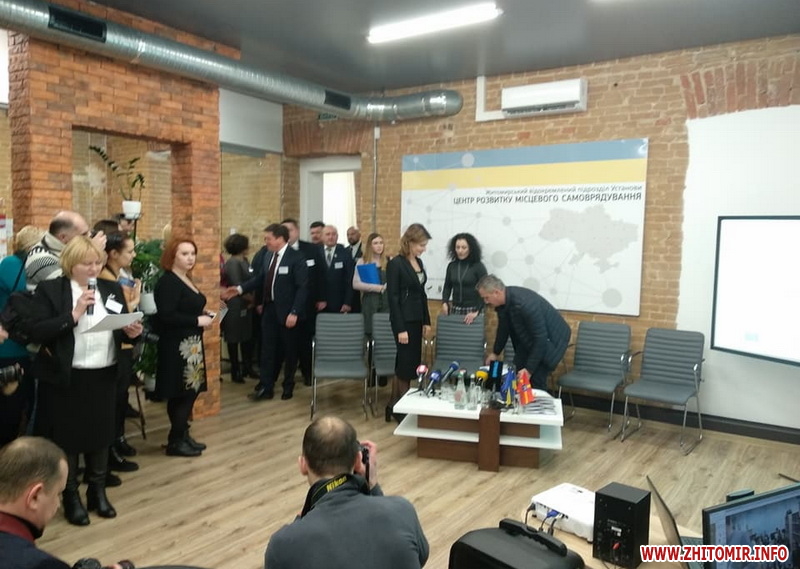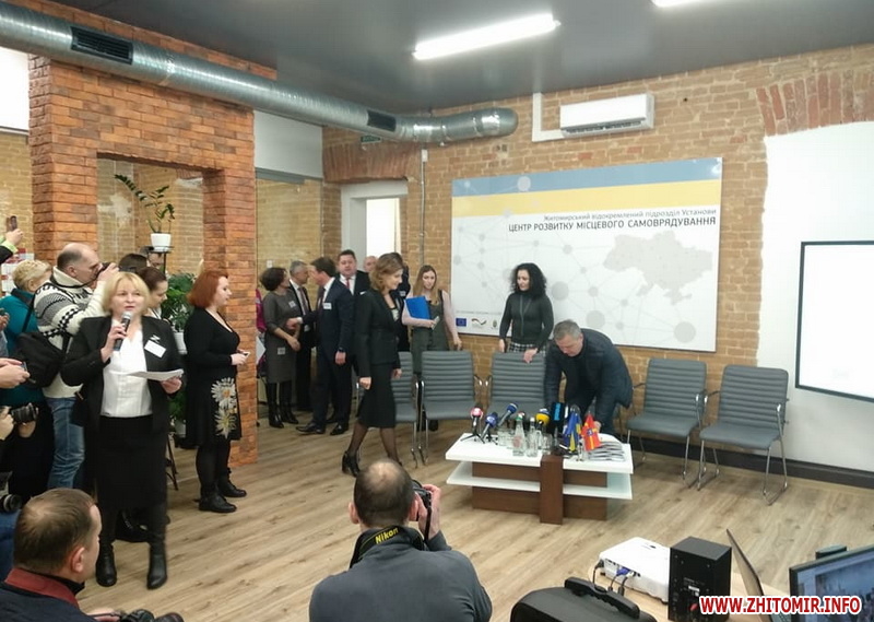 Перша леді прибула разом з Віце-прем'єр міністром, міністром регіонального розвитку, будівництва та ЖКГ Геннадієм Зубком. Поважні гості спілкуються з головами ОТГ, райдержадміністрацій та міськими головами щодо створення в області інклюзивно-ресурсних центрів. Марина Порошенко відзначила, що Житомирська область – перша, де будуть створені такі центри.