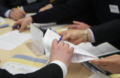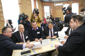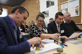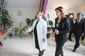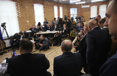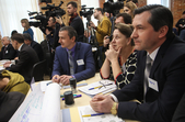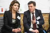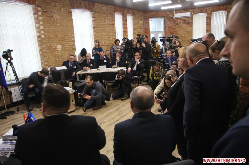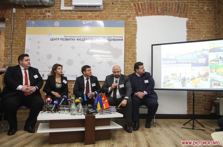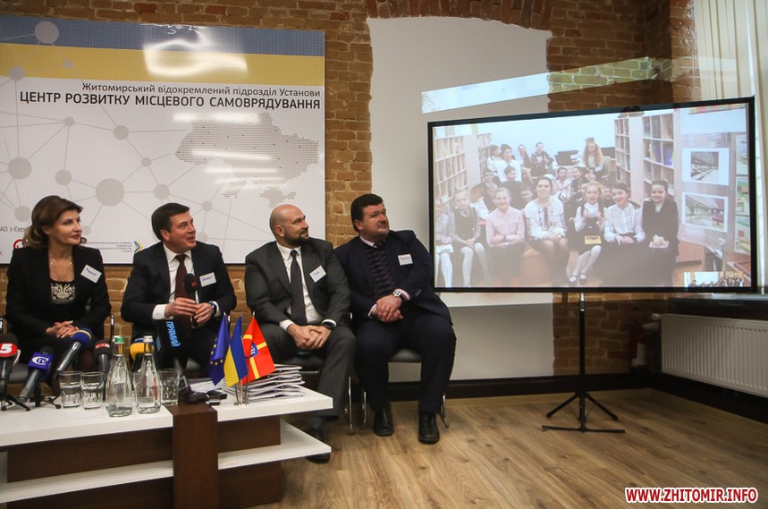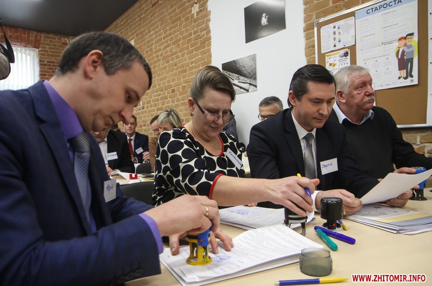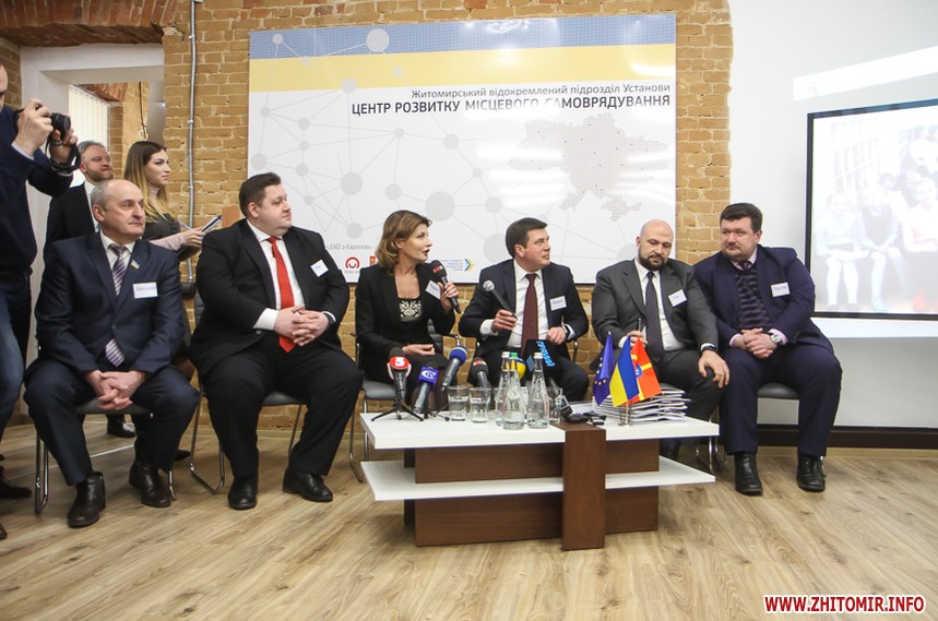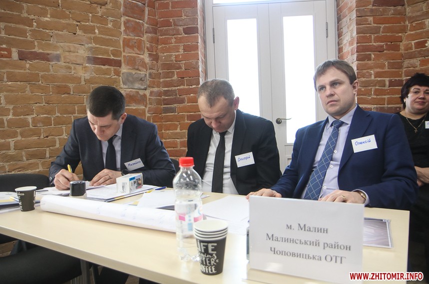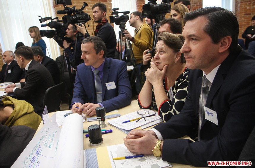 У Центрі розвитку місцевого самоврядування на вулиці Михайлівській, яку ретельно готували до приїзду першої леді, гості надали місце поряд із керівниками Житомирської ОДА та облради, усім прикріпили бейжді з іменами. За «круглими» столами сиділи інші учасники зустрічі – мер Житомира Сергій Сухомлин, міські голови та керівники ОТГ.