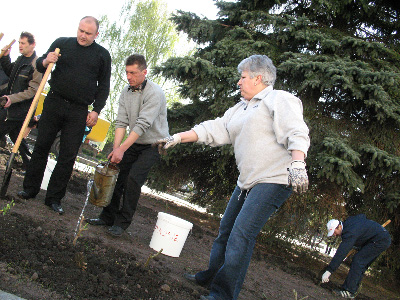 в прошлом году в мае под ее руководством городские чиновники и депутаты высадили не одну сотню роз на площади Королева в центре Житомира, прямо напротив мэрии.
