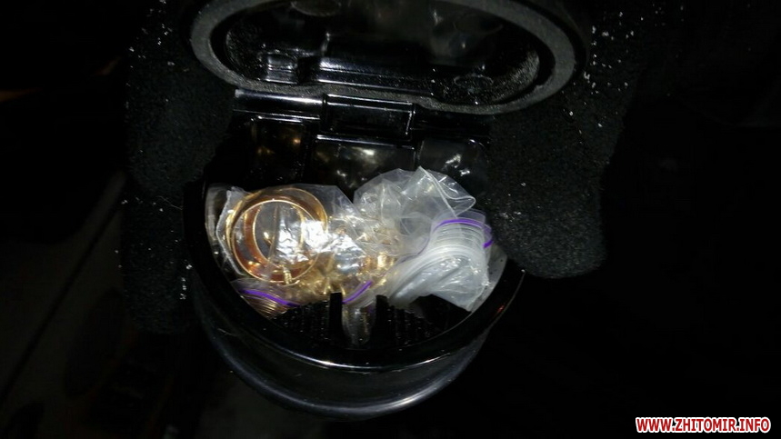 «Близько 18.30 на виїзді з обласного центру поліцейські затримали автомобіль «БМВ», в якому знаходилось троє громадян. За наявною інформацією, упродовж 7-8 лютого вони встигли обікрасти у Житомирі кілька осель. Згодом з’ясувалось, що молодики є жителями східних областей України, віком від 30 до 35 років. Прибули до Житомира із заходу, а були затримані на виїзді у напрямку столиці. Під час огляду їх транспортного засобу було вилучено специфічні інструменти, фомки, набір відмичок, змінне взуття та рукавички. Також виявлено ювелірні вироби із золота та срібла, гроші у гривнях та валюті, банківські картки та інші речі, що можуть вказувати на злочинну діяльність», - йдеться у повідомленні.