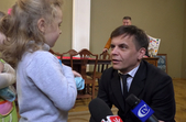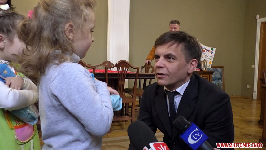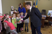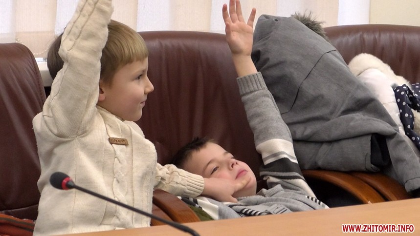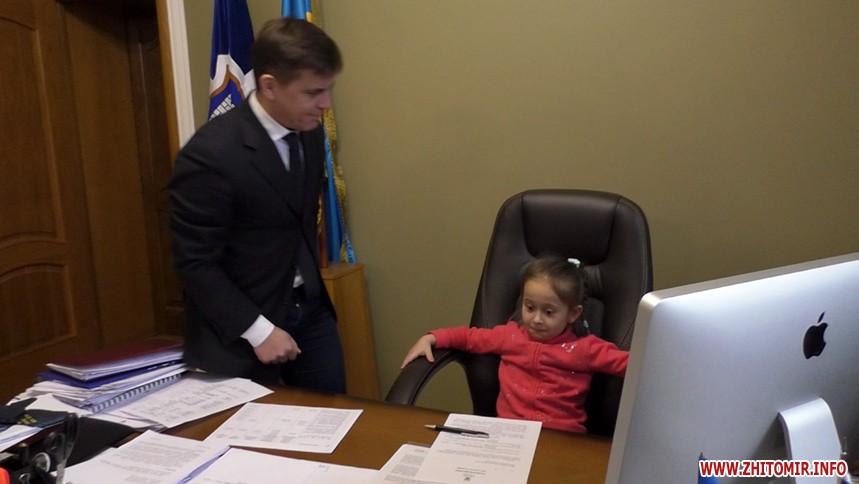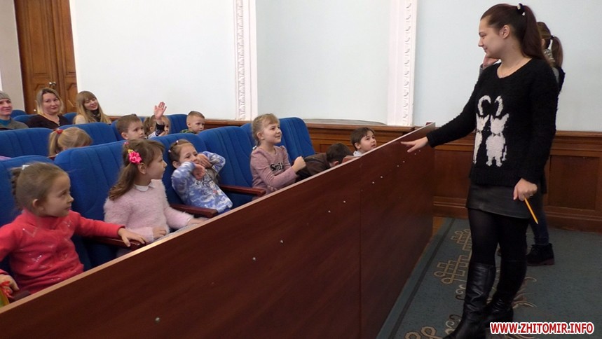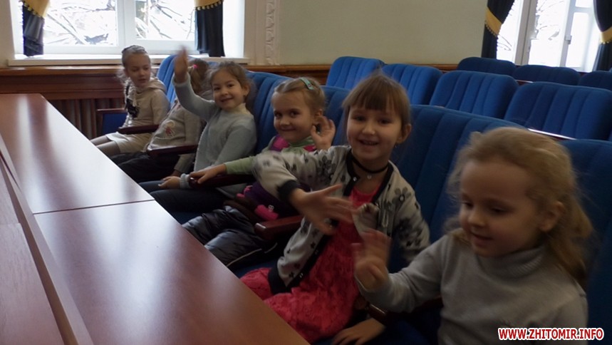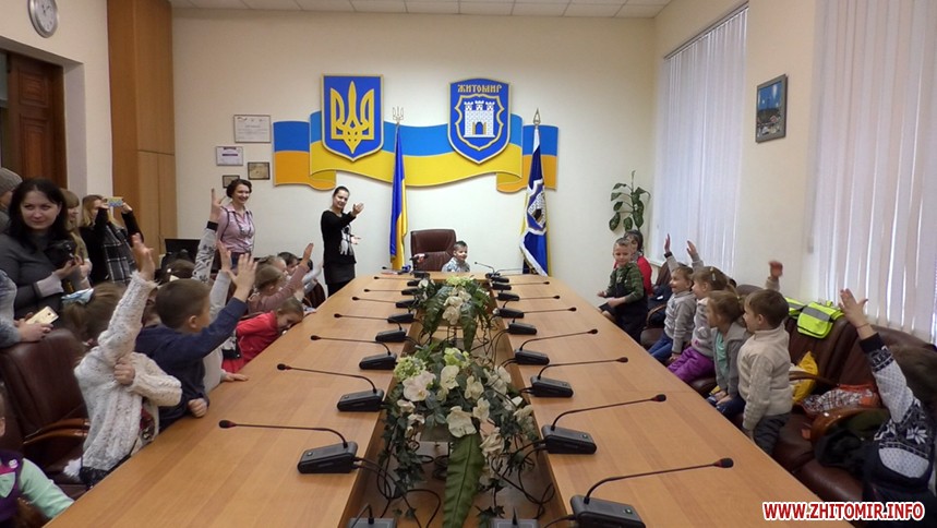 У Житомирі вихованці дитячого садочка №53, в якому мер під прикриттям працював вихователем, прийшли на екскурсію до міськради. Дітей хутчіш запрошують до прес-центру та дозволяють не просто посидіти у «мерському кріслі», а й пофантазувати: щоб вони зробили, якби були міським головою. І тут розпочинається справжній дитячий виконком з рішеннями та голосуванням.