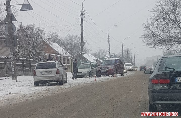 Як повідомляв Житомир.info, вранці 9 лютого через зіткнення вантажівки і легковика на Великій Бердичівській утворилася «тягучка» , а пообіді на перехресті вулиць Київської та Східної не розминулися ВАЗ і Citroen.