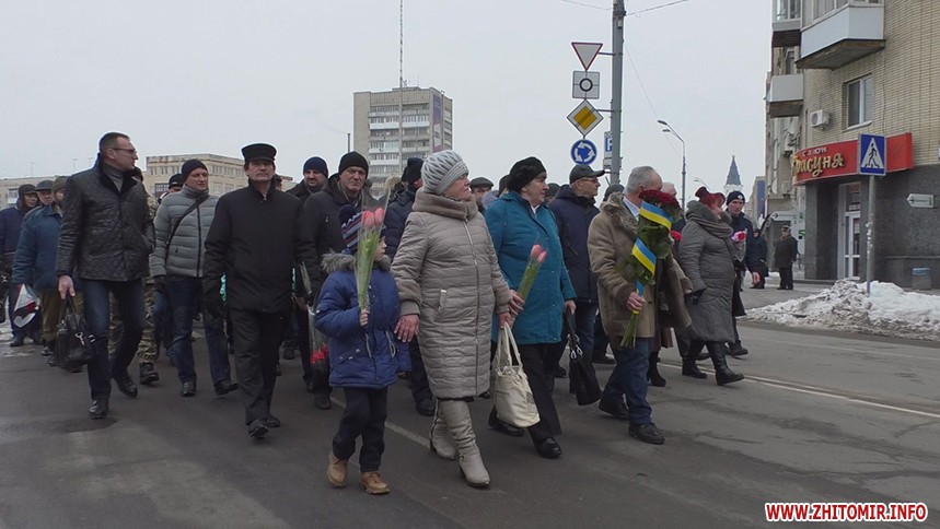 У день 29-ї річниці виведення військ з Афганістану кілька сотень людей із квітами в руках пройшли ходою центральною вулицею Житомира від майдану Соборного до пам’ятника «Чорний тюльпан» на Новому бульварі.